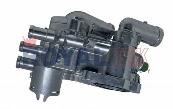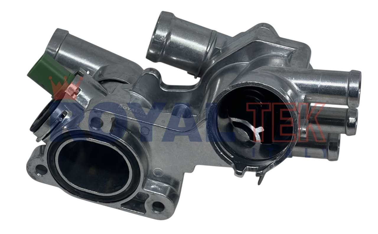 TERMOSTATO COMPLETO ROYALTEK VOLKSWAGEN FOX / SURAN / GOL TREND / VOYAGE / SAVEIRO -- CUERPO ALUMINIO / BULBO VERDE (4 PINES) - TEMPERATURA 87